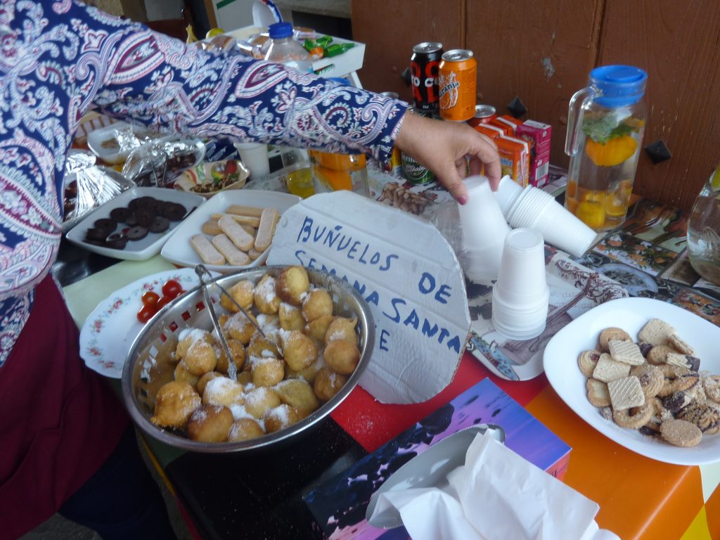 Een boerin stelt haar huis open voor lekkere oliebollen ter gelegenheid van de heilige week, je mag geven wat je kwijt wilt = donativo
